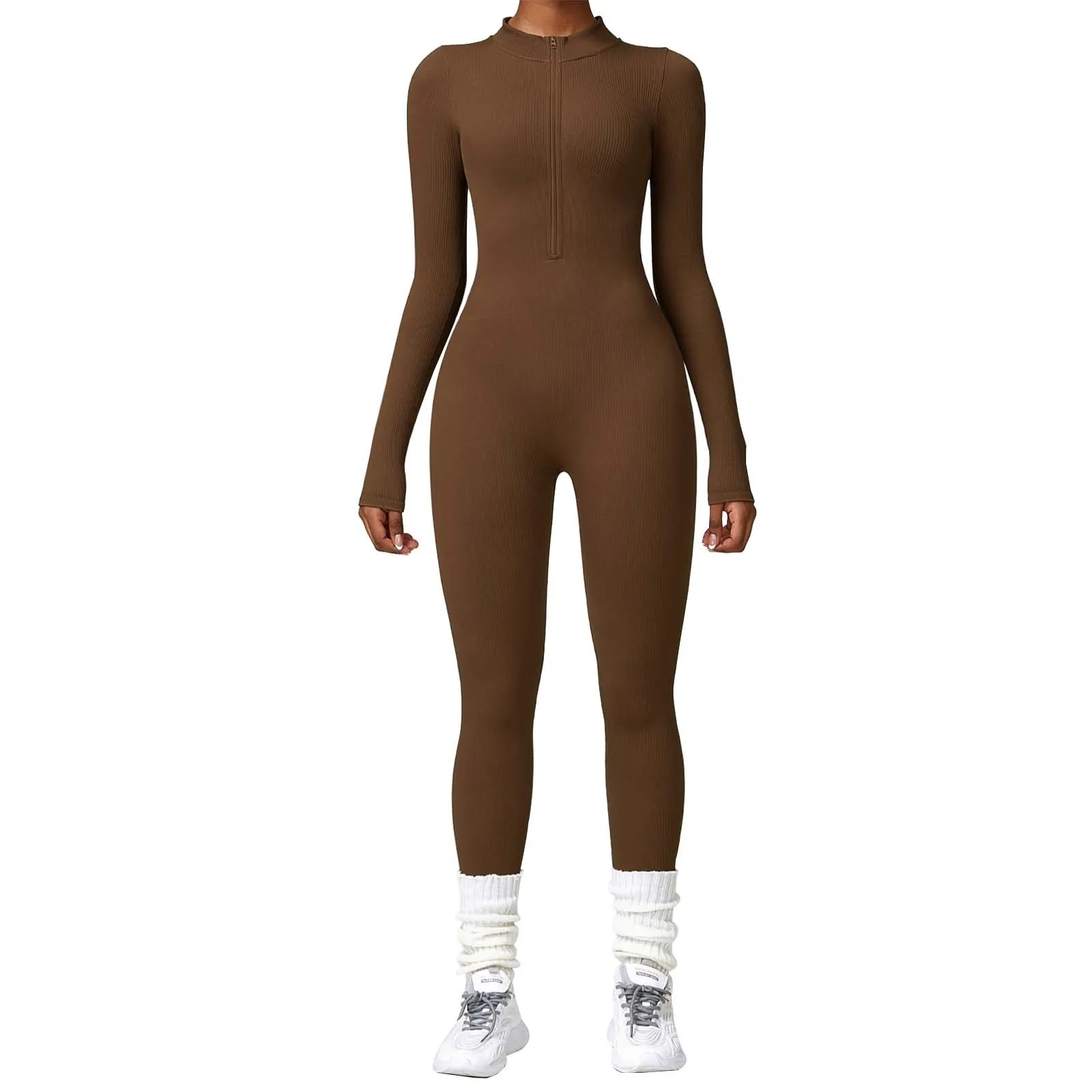 Women's Seamless Yoga Jumpsuit Long Sleeve Bodycon Playsuit Streetwear Tight Skinny Overalls Zip Up Fitness Jumpsuits For Women