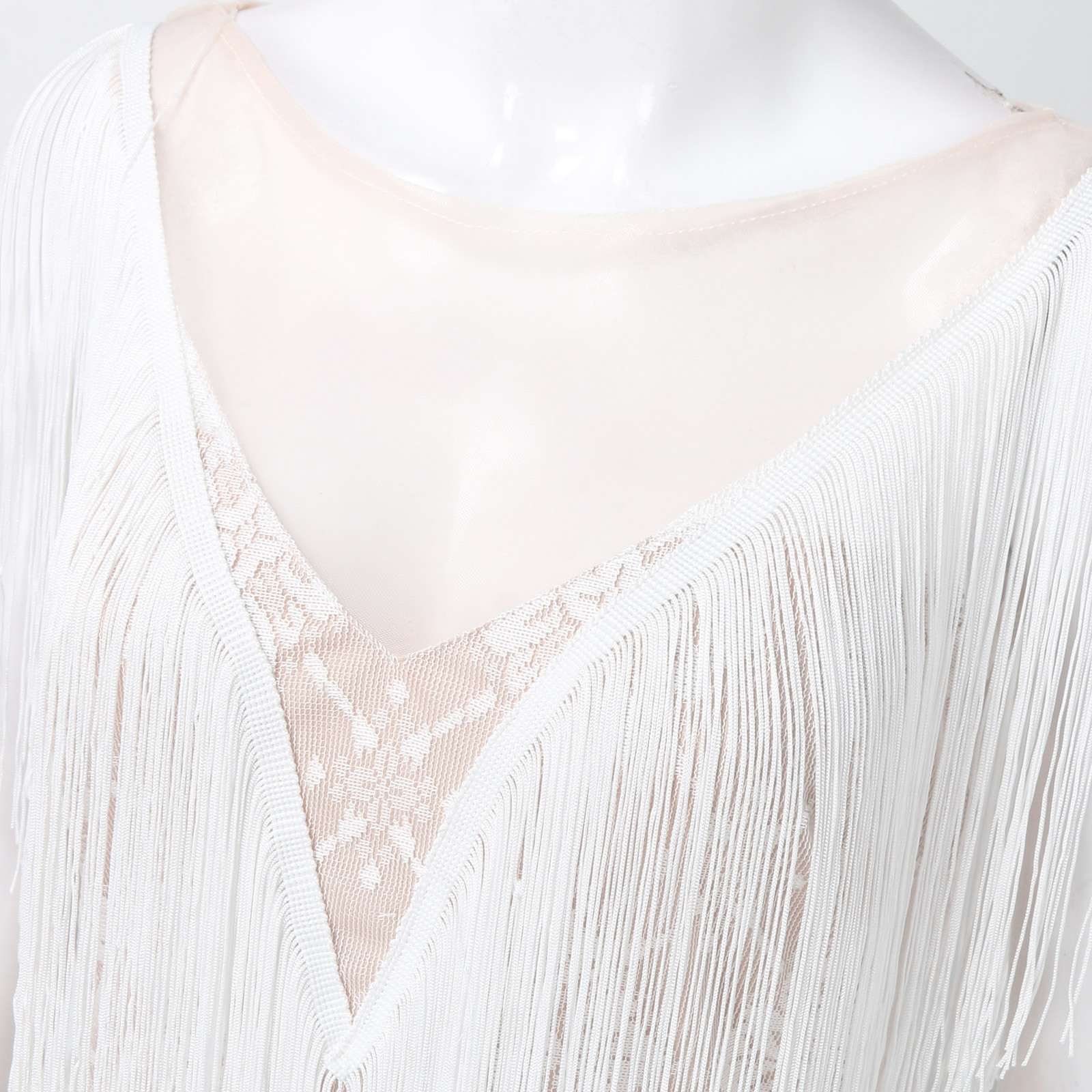 Off-the-shoulder, layered, fringed trim, zip closure, cropped club party dress