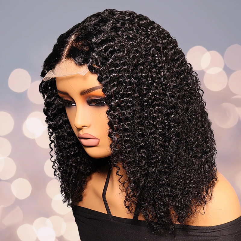 Wigs For Women Kinky Curly Lace Wig Human Hair Brazilian Hair Curly Bob Wig 200D 4X4 Lace Closure Wigs With Pre-Plucked Natural
