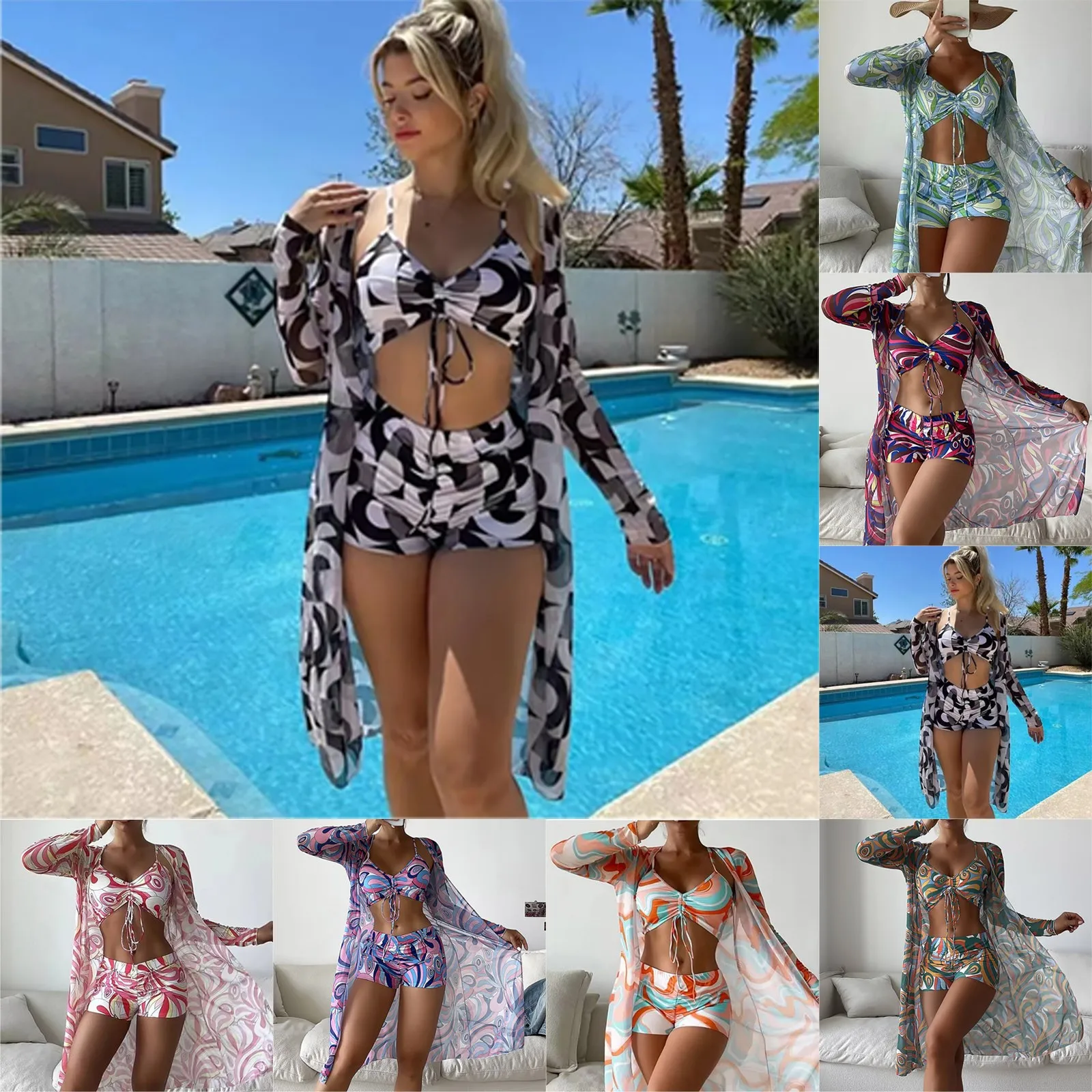 A side swimsuit with a special tie and boy shorts provides coverage for women.