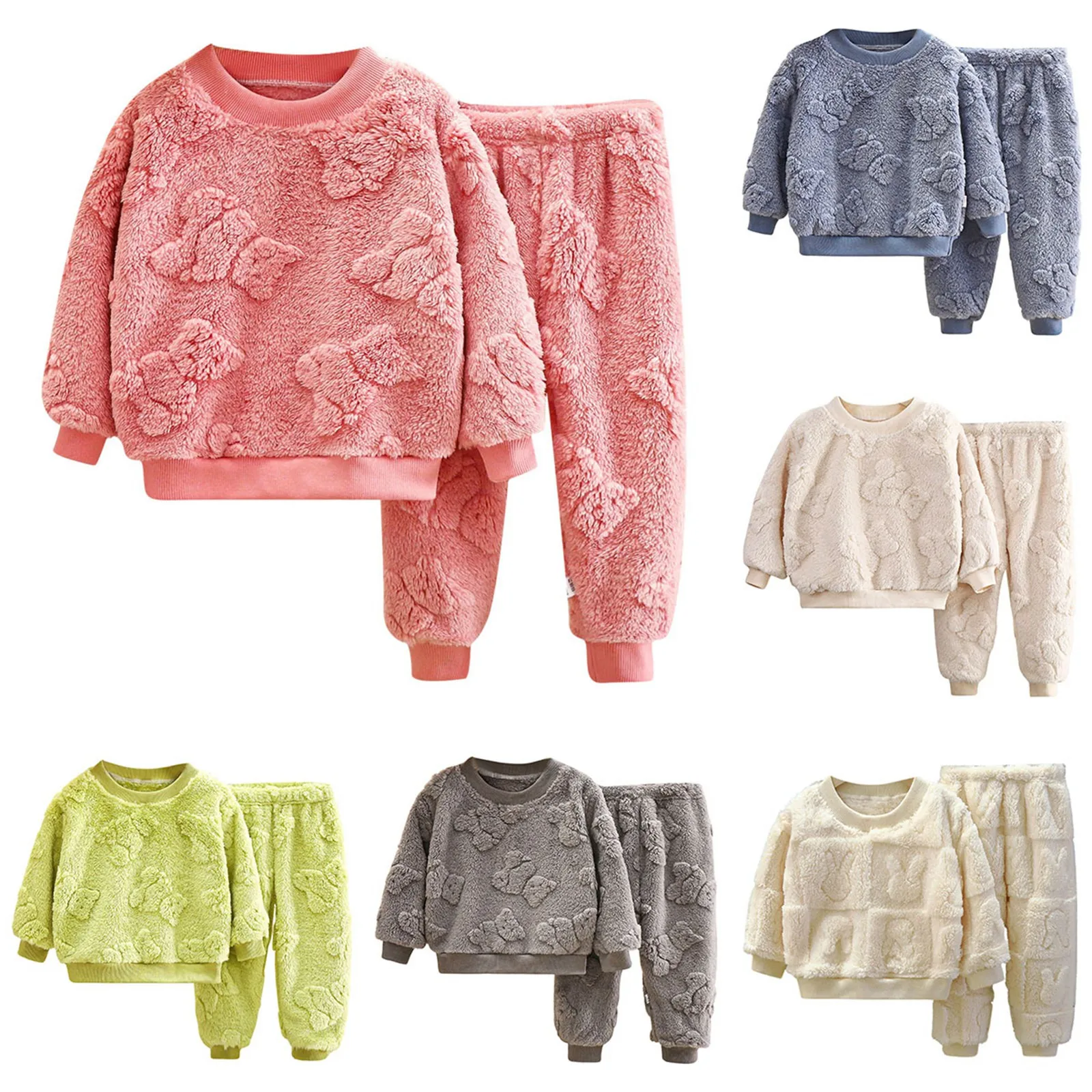 Children's Set Baby And Fleece Pajamas Boys' Jacquard Homewear Girls' Fuzzy Warm Two Piece Set