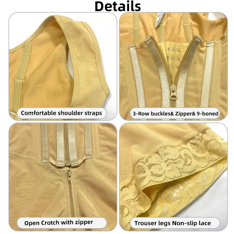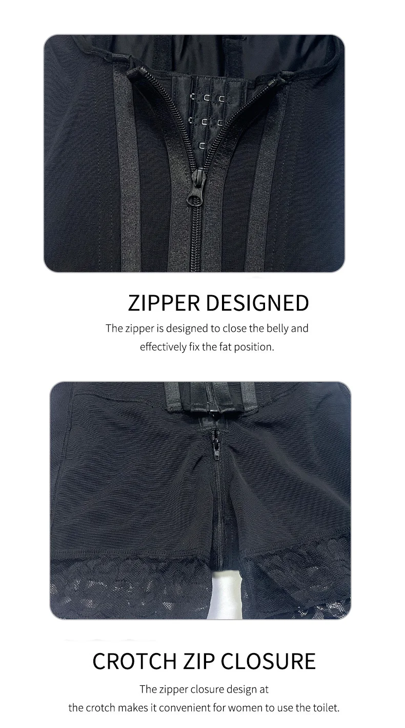 Body Shaper Shapewear Women Bodysuit Colombian Fajas 9-bone High Compression Girdle Double Tummy Control,Open Crotch with Zipper