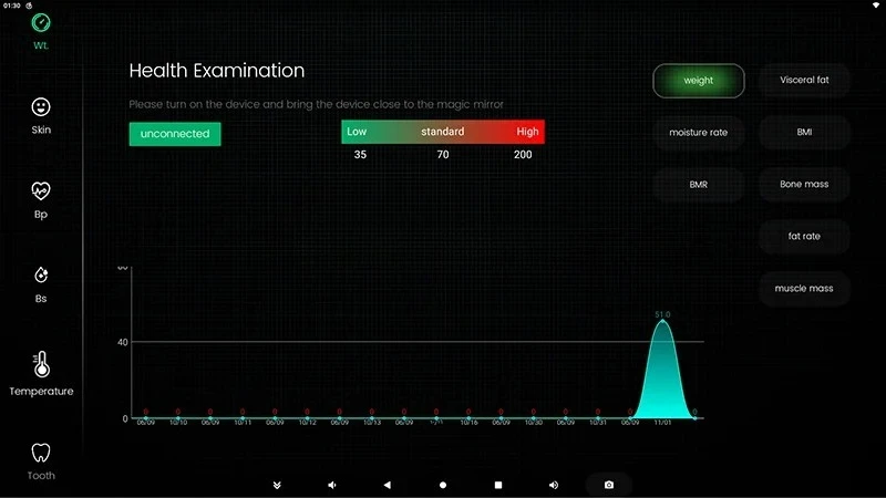 1.Weight check : can check you weight/moisture rate/BMI/BMR/fate rate etc.