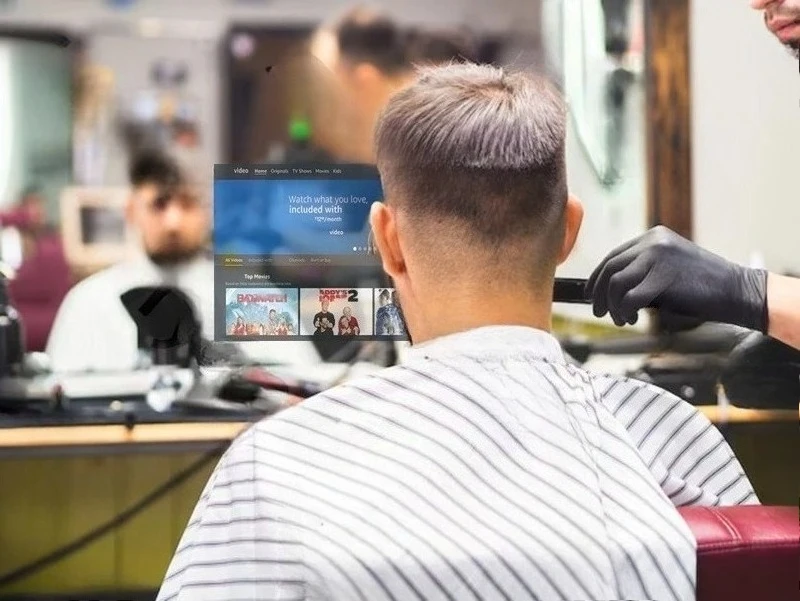 Used in your barbershop, customers can watch TV while you get your hair cut, or use hair software to choose a hairstyle